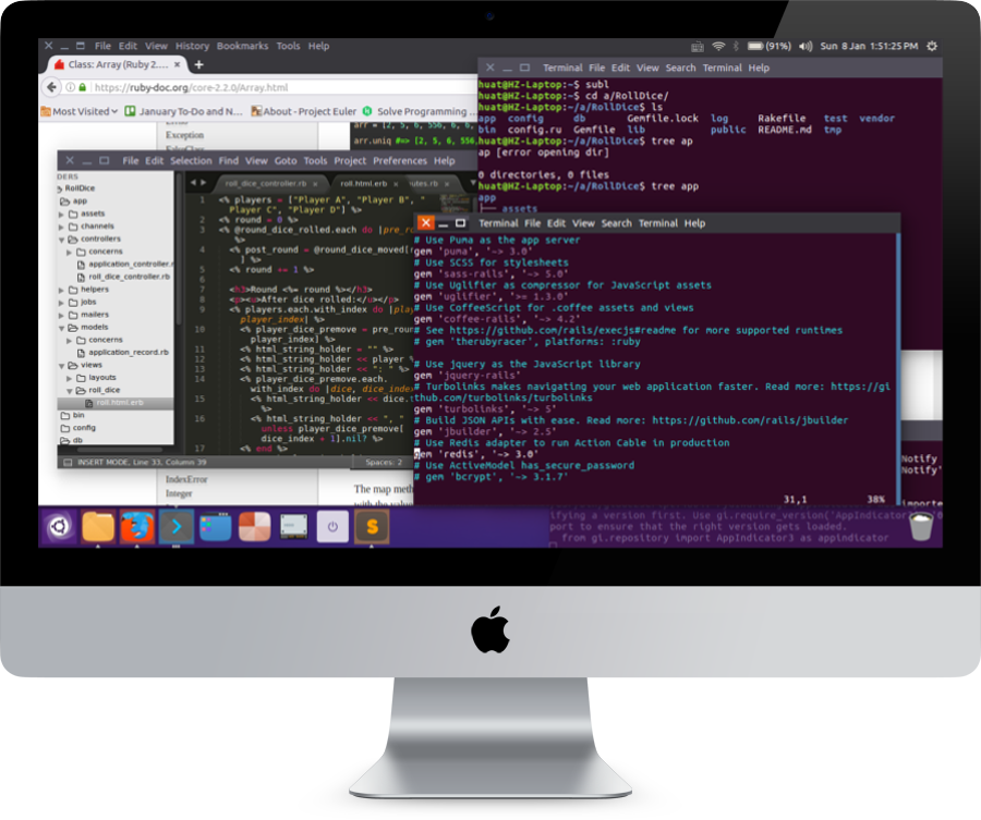 Yaay~~ Linux in Mac.. Er hem... I like to have fun with coding. However, I prefer constantly having flashy new stuff when doing it.